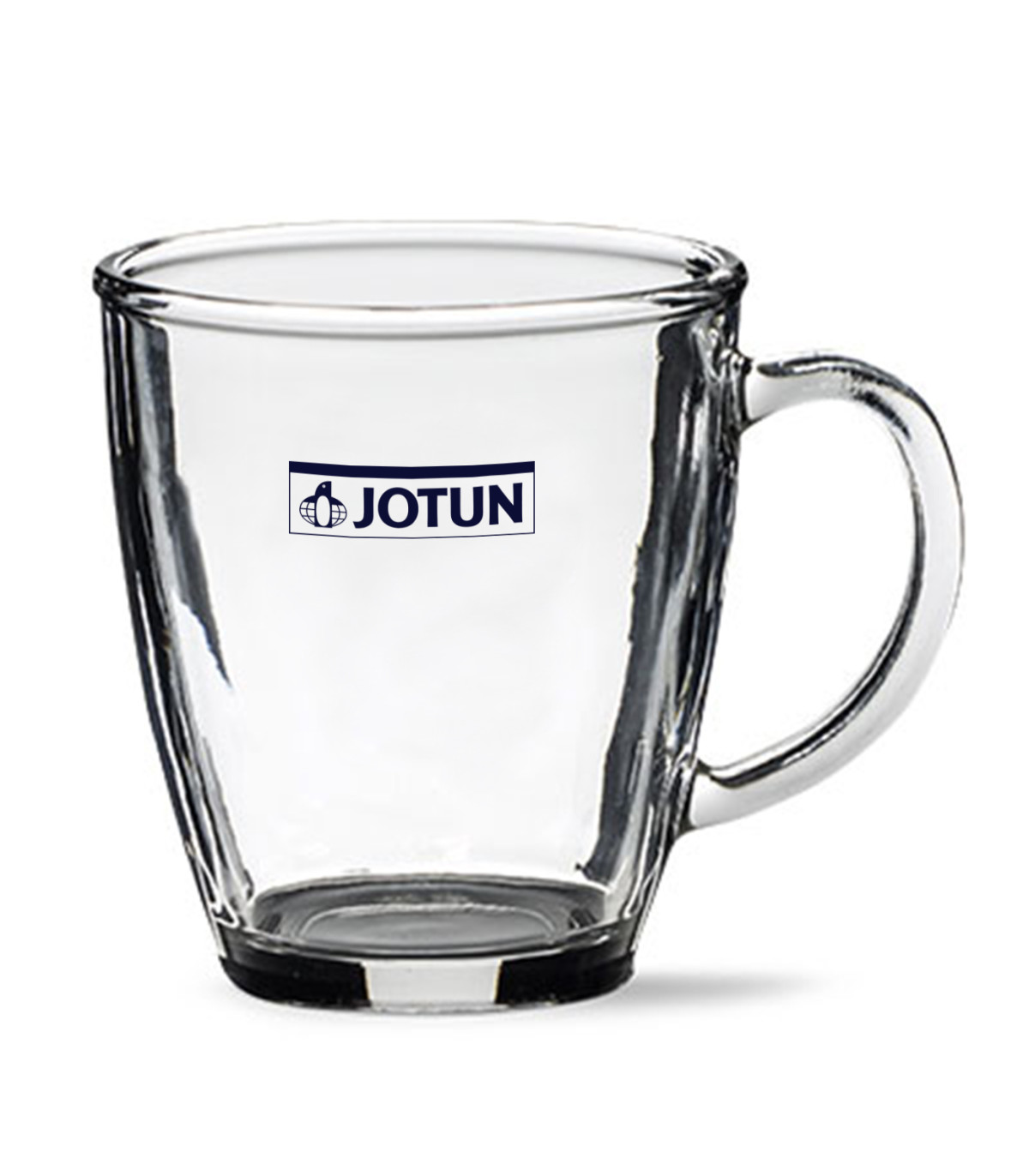 Glass advertising mug made of thick-walled glass with a classic, rounded shape. Irreplaceable in every home.