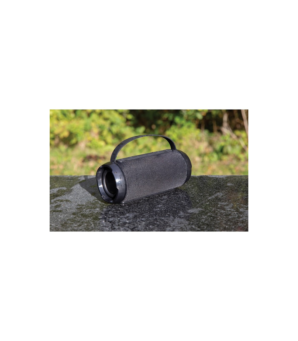 Głośnik bezprzewodowy 6W BT 5.0, wodoodporny IPX4, mikrofon, funkcja odbierania połączeń, wbudowany akumulator o pojemności 1200 mAh umożliwia odtwarzanie do 6 godzin, zasięg do 10m, wykonany z ABS i PET z recyklingu z certyfikatem RCS, całkowita zawartość materiałów z recyklingu obliczona na podstawie wagi całkowitej przedmiotu: 41%, kabel do ładowania z TPE z recyklingu w komplecie, w pudełku z papieru kraftowego z certyfikatem FSC® mix