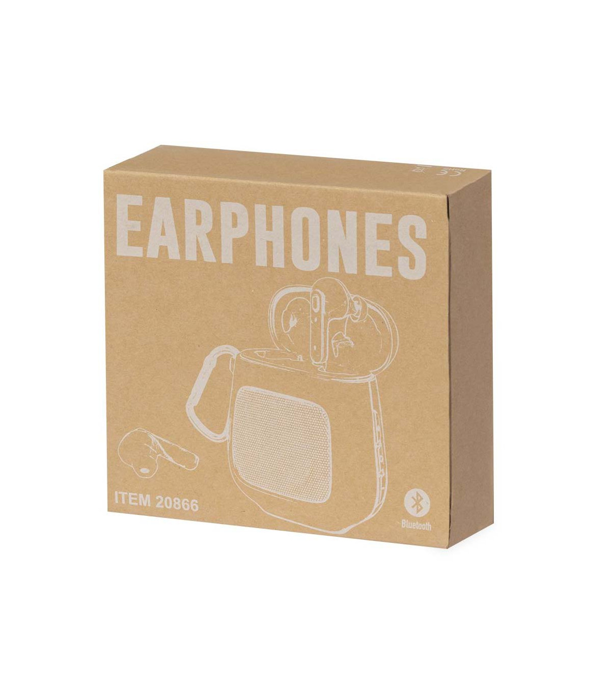 Unikalne słuchawki z głośnikiem i łączem Bluetooth® 5.0, wykonane z wytrzymałego tworzywa ABS w kolorze białym. Zestaw zawiera głośnik Bluetooth® o mocy 3 W, funkcję głośnomówiącą i karabińczyk. Uzupełnieniem zestawu jest para słuchawek z wbudowanym przyciskiem sterującym i baterią o pojemności 30 mAh każda. Stacja ładująca o pojemności 600 mAh, z diodą LED wskazującą stan ładowania. Instrukcja obsługi w języku angielskim i hiszpańskim.