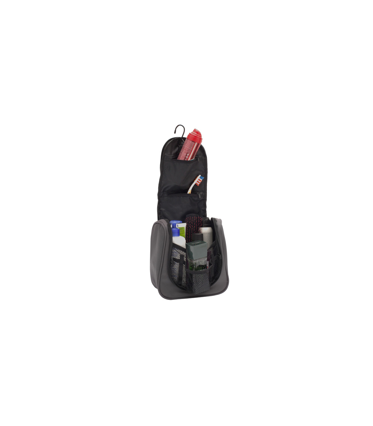 Wykonana z nylonu 1680 D podróżna kosmetyczka. Rozkładana i wyposażona w haczyk pozwalający na jej wygodne zawieszenie. Kosmetyki nie są dołączone.