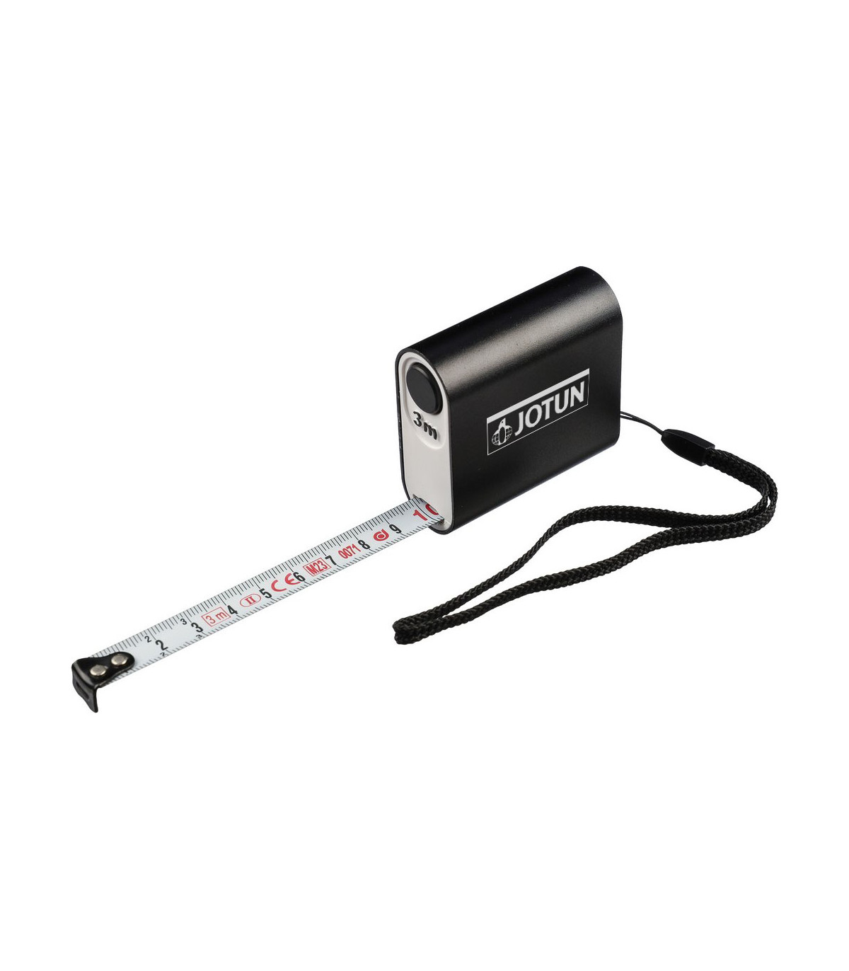 Miara 3m w centymetrach, opaska na nadgarstek ułatwiająca noszenie, zapakowana w brązowy kartonik, produkty wykonany z ABS i metalu