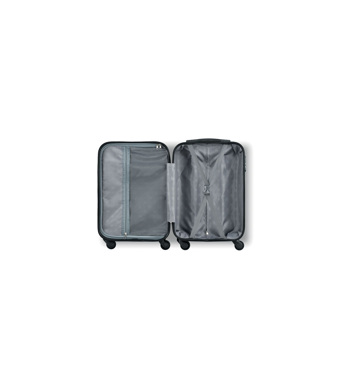 Walizka 20 cali z mocnego, twardego ABS, posiada 4 kółka obracane 360 stopni. W środku komora główna i mała boczna.